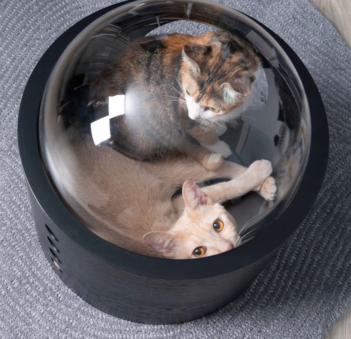 宇宙船本体は空気の流通を良くするための四つの小さいな穴を開けているので、夏でも快適に過ごすことができます。そして寒い日は中にクッションや毛布、タオルなどを敷いてあげることで、保温性が高くなり、より寝心地いい空間になり