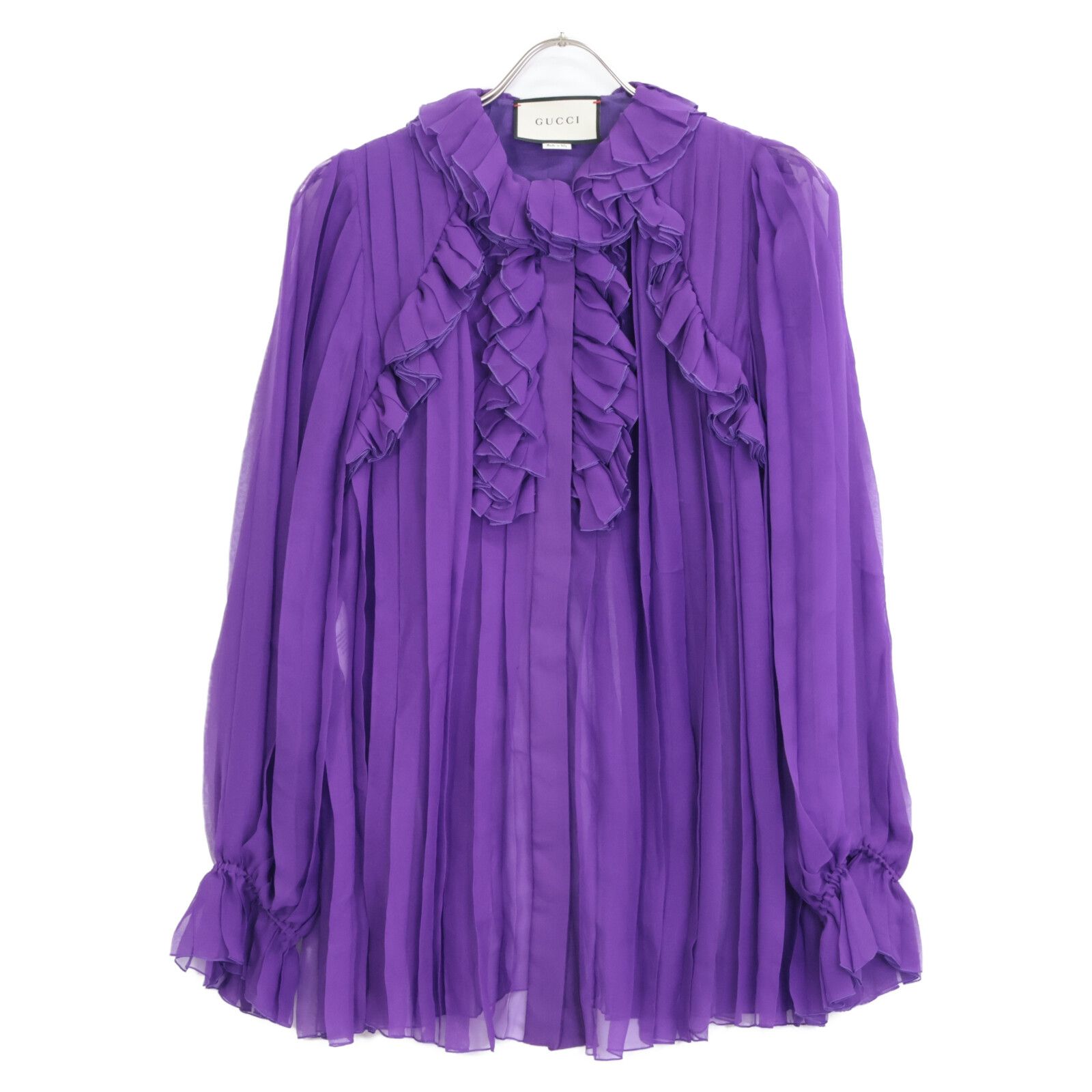 GUCCI グッチ 494413 17年 パープル シルク100 プリーツフリルシャツブラウス 36