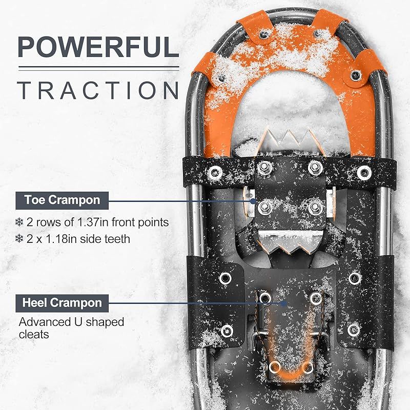 【男女兼用4-in-1セット】このセットには、2*スノーシューズ、1*トレッキングポール、1*スノーゲーター、および1*収納袋が含まれています。使いやすさをする軽量で高品質の素材で作られ、便利なバッグが付けているこのセットは、スノーシューイングの冒険やアウトドア活動に最適です。 80-120lbs / 35-55kgで21インチ、120-160lbs / 55-73kgで25インチ、160-250lbs / 73-113kgで30インチ。
