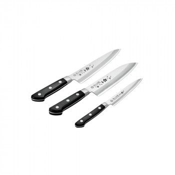 切れ味、耐久性、厳しい要求に応える本割込包丁。桜柄のロゴ印刷入り!桜吟シリーズの三徳包丁・牛刀包丁・ペティナイフのセットです。