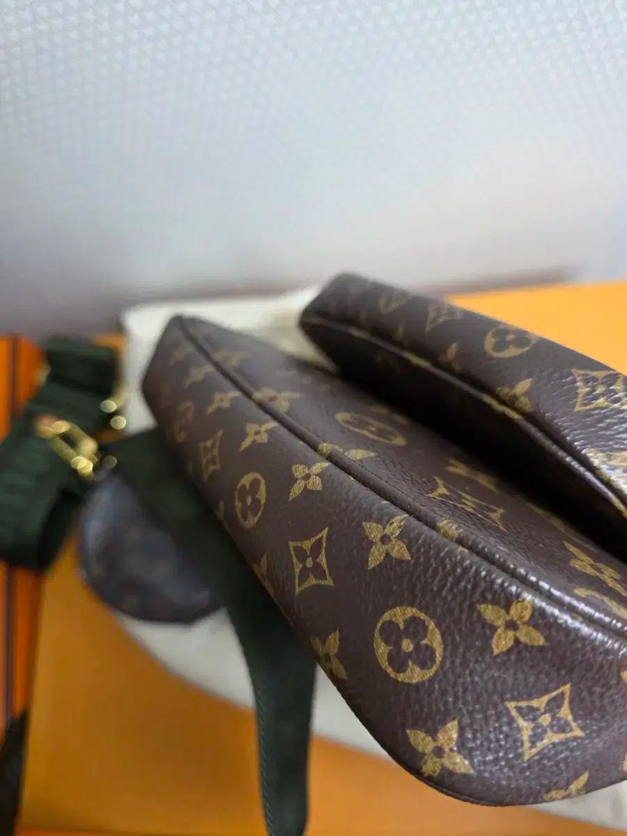ルイヴィトンのマルチポシェットアクセサリークロスボディバッグです。カーキ色のストラップがアクセントになっていて個性的です。取り外し可能なミニポーチも付属しています。ご不明な点がなければ、すぐに安心してお支払いいただけます!