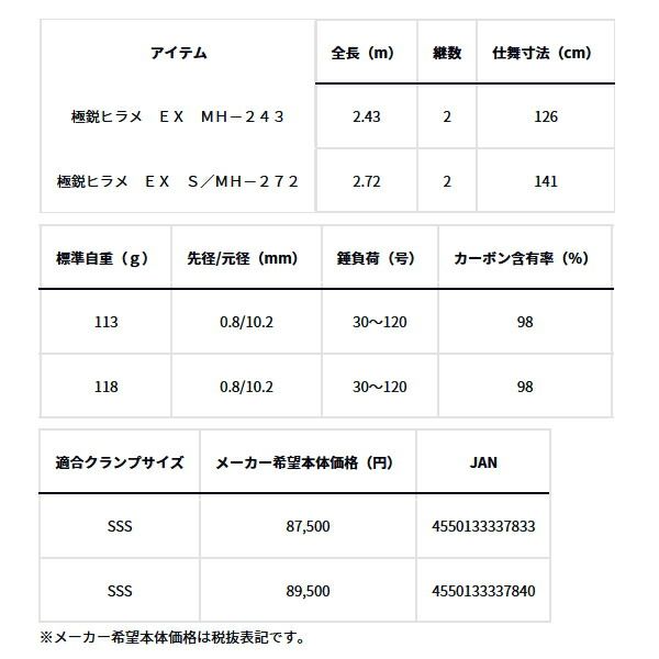 ≪ 23年 新商品 ≫ ダイワ 鋭 ヒラメ EX MH 243 〔仕舞寸法 126 cm〕