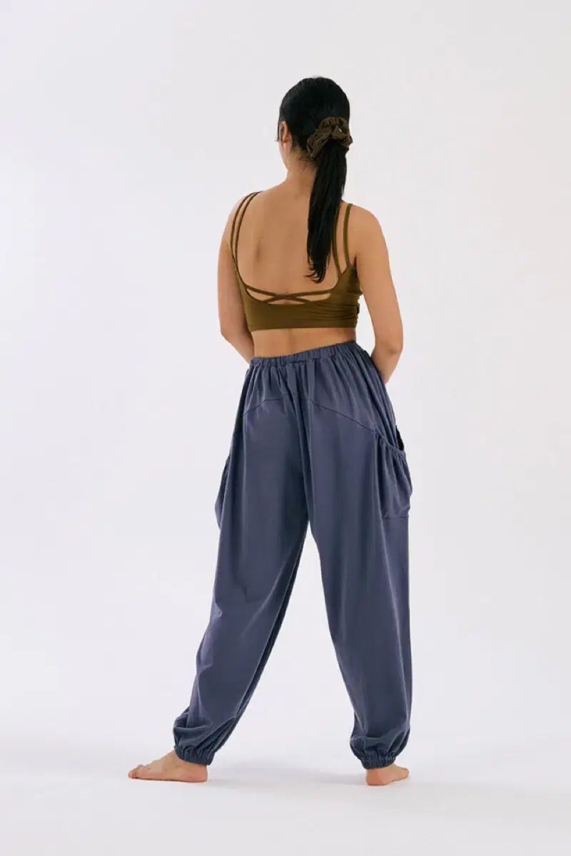 ウエスト部分はシャーリングで調節可能で、安定した着用感を与え、ゆったりと落ちるシルエットは、快適でありながら自然な動きを助けます。サイドの大きいポケットはデザイン的なポイントであり、実用性を加えて個性的な雰囲気を演出します。