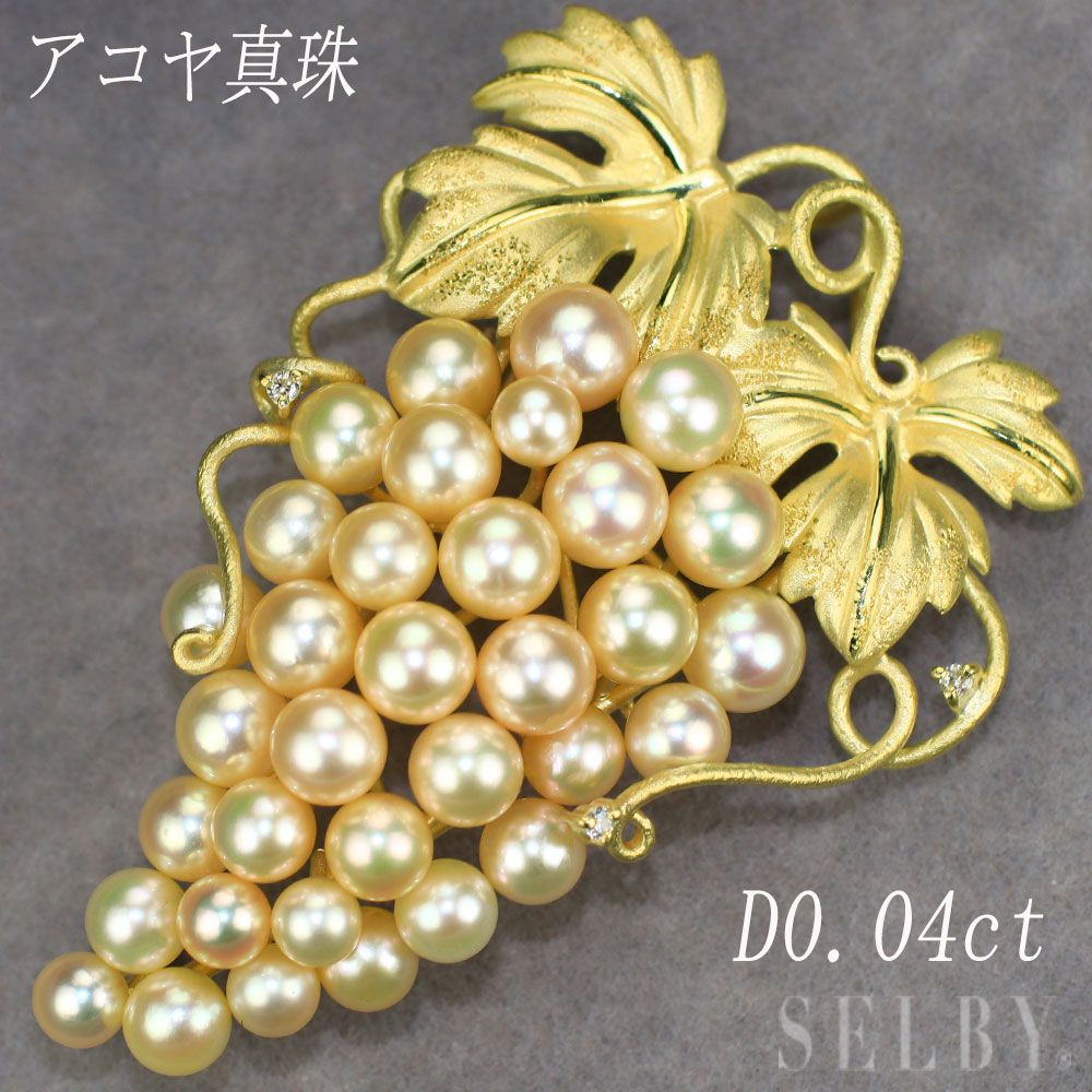 K 18 YG アコヤ真珠 ダイヤモンド ブローチ兼ペンダントトップ 径約3.8-5.6 mm D 0.04 ct ぶどう
