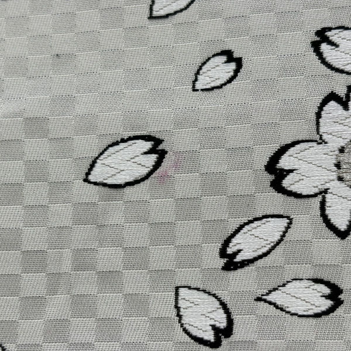 袋帯 桜 唐織 銀糸 灰白 六通 正絹