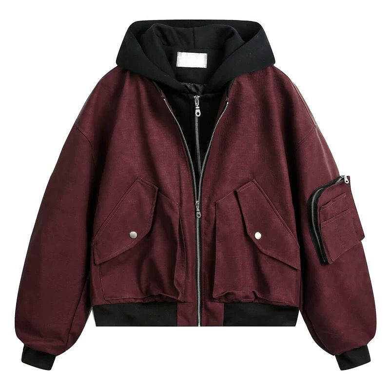 こちらは、アメリカンヴィンテージ&ストリートテイストを取り入れた、痞(ワル)感のあるフェイクレイヤードデザインのフード付きPUレザージャケットです。