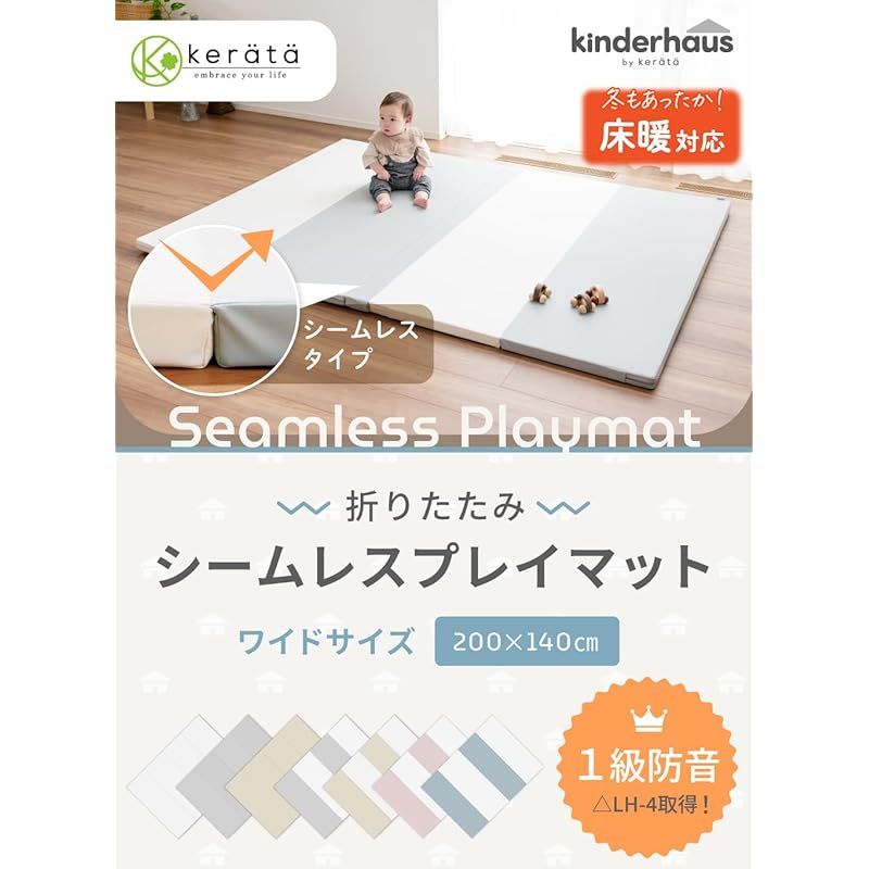 ケラッタ プレイマット シームレス 折りたたみ 赤ちゃん すき間ゼロでお手入れらくらく 1級防音 防水 厚手 1