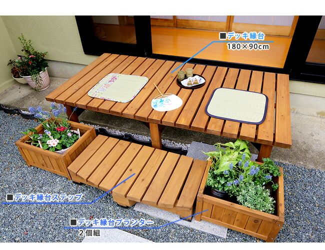 憩いの場になりそう♪「デッキ縁台」シリーズと組み合わせることで、ウッドデッキ風の本格的な縁台を設置することもできます●