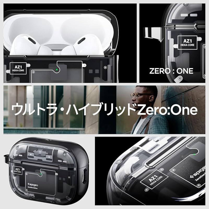 商品名:Spigen Airpods Pro 2 ケース MagSafe対応 マグネット搭載 黄変なし 2重構造 米軍MIL規格取得 耐衝撃 マグセーフ 適用カバー ワイヤレス充電対応 ウルトラハイブリッドマグ ACS05593 (ゼロワン・ブラック)