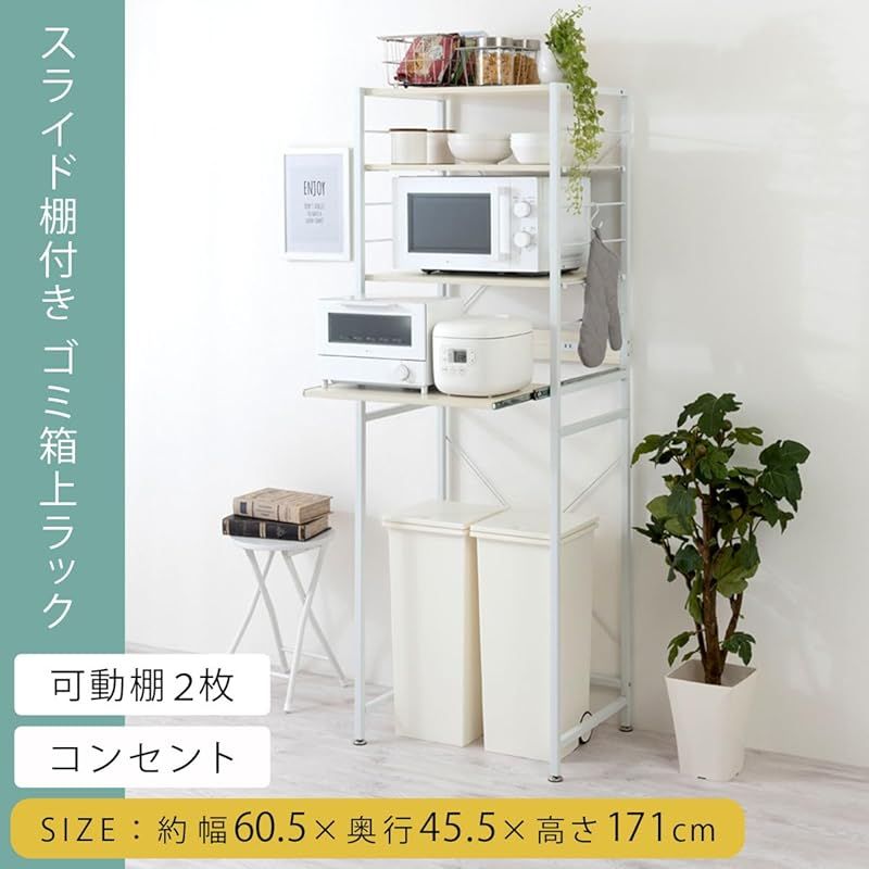 ぼん家具 キッチンラック ゴミ箱上 幅60 5 奥行45 高さ171 cm レンジ台 2口コンセント付き 可動棚 スライドレール付き ウォールナット 0