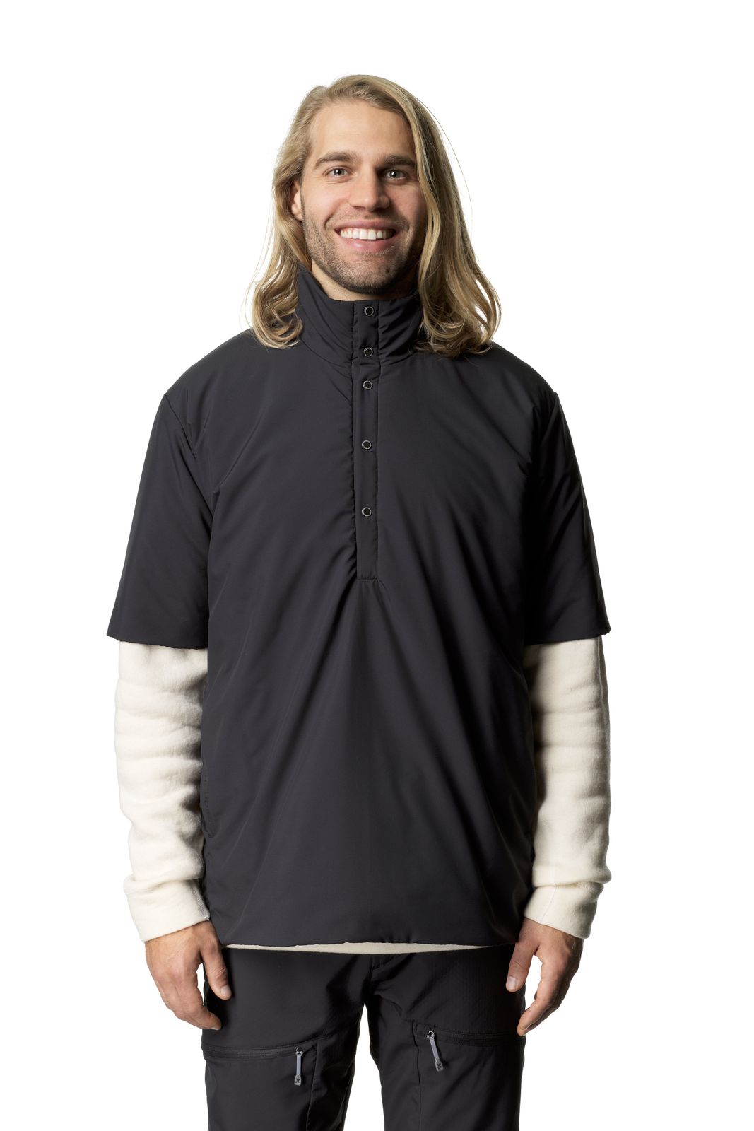 首元にスナップボタンをあしらったTシャツタイプのインサレーションです。表地は撥水加工が施されたC9 Ripstop?、中綿には軽量で暖かなPrimaLoft? Gold Active+を使用し、優れた透湿性、速乾性、防風性により様々なシーンを快適にしてくれます。ベースレイヤーやミッドレイヤーに重ねれば上半身の主要な部分をカバーすることができ、長袖のインサレーションに比べて軽量でかさばらないことが特徴です。フロントジッパーとフードのないミニマリストデザインのためシェルの下にもレイヤリングしやすく、登山やスノーアクティビティ、キャンプや日常生活など、保温性を追加したいあらゆるシチュエーションで活躍します。両サイドにポケット、裾にはフィッティング調整のドローコードを備え、ユニセックス仕様でレギュラーフィットのデザインを採用しています。