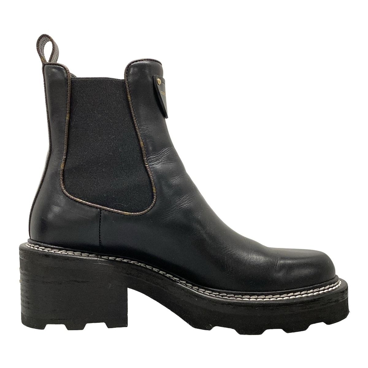 LOUIS VUITTON ルイヴィトン ショートブーツ 38 レディース LVボブール ライン アンクルブーツ 黒×モノグラム サイドゴア レザー