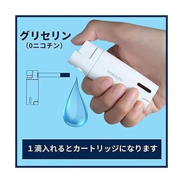HIMASU加熱式たばこ装置は、専用のスティックではなく、通常の紙巻きタバコを使用するだけで十分です。お好みの味わいを選べるようになります。|HIMASUは、市場でよく使われている中心に加熱する製品ではなく、周辺リング加熱の方式を採用しているため、加熱面が大きくて均一な加熱が可能になります。熱でタバコの葉の一枚一枚を均一に焼き上げ、焦げ臭くなくて、タバコ本来の風味を取り戻すことができます。|通常の紙巻きタバコに、同梱している専用ボトルを使ってグリセリンを1滴入れると、この部分がカートリッジになります。グリセリンは、主要ブランドのタバコの専用スティックに大量に使用されており。(同梱物:5x5ml グリセリン)|1/3だけを加熱することで、1パックが3パックになります。喫煙コストが大幅に削減できることを意味しています。 仮に1日1箱のタバコを吸うとすると、HIMASUを使うことで、年間10万円以上の節約になります。|HIMASUでは2つの温度モードが搭載されており、様々な味のニーズに合わせて調整することができ、個々の要求に応えることができます。||通常太さの紙巻タバコに適しています:|通常太さの紙巻タバコ(直径約7.78mm)。|低消費電力設計:|HIMASU内蔵1300mAhリチウムバッテリー,温度モード1満電で約12回加熱吸うことができます。|2つの加熱モード:|HIMASUには2つの温度モードがあります,モード2の温度は1より少し高くなっています,煙と満足感も二つグレードになります。|毎回喫煙口数:|加熱・喫煙時間は3分30秒です,1回の加熱で喫煙口数は1012で、一本に火を付け口数と似ています。|グリセリン(VG):|食品添加物グレード・植物性のグリセリンを使用してください,自分で購入できます。ニコチンを含む電子タバコのリキッドを使用しないでくださ。|充電方法:|Type-C USBケーブルで5V充電器を使用してください。 満充電までには約1時間かかります。|加熱温度:|加熱温度は約200℃、温度が低いほど有害成分の高温割れを防ぐことができます。|隠式ノズル:|喫煙ときにノズルを押し出し、完了後は下にスライドさせてノズルを隠します。掃除と収納が便利になります。|味覚調整室のデザイン:|紙巻タバコの強度は大小異なります。HIMASUはフィルターエ上に味覚調整チャンバーを設計しました。紙巻タバコフィルター或いは紙のボールなどを入れることで強度と味を調整できます、タバコ一パックでも無駄しなくします。|製品仕様:|サイズ:95x46x22mm、重さ:90g|