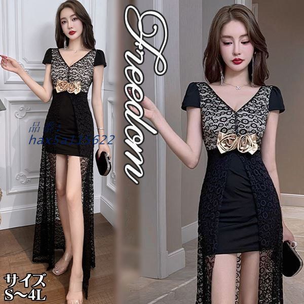 セクシー ドレス キャバドレス ミニドレス 大きいサイズ レース切替ウエスト花モチーフのセクシーインナーミニロングドレス L S サイズ M 4 3 2 hax 5 a 115622