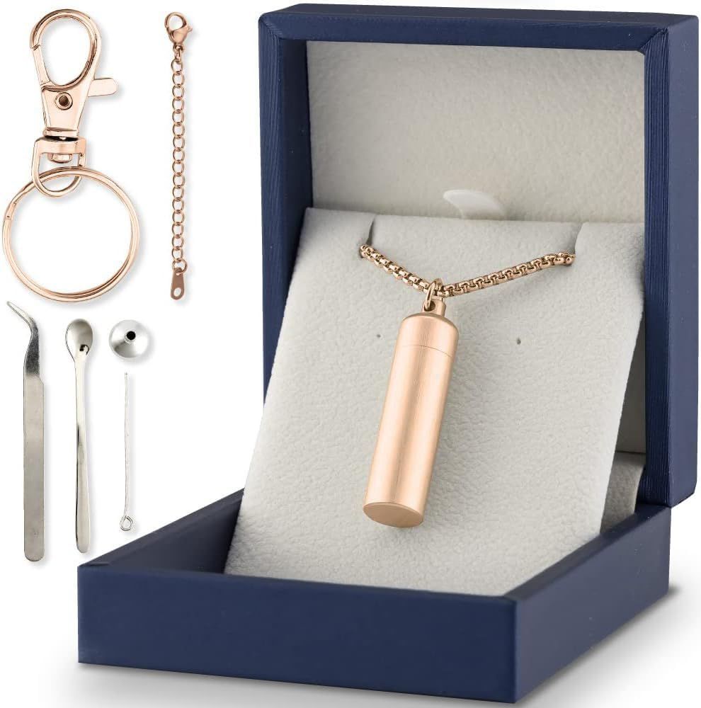 Size:艶消し仕上げ_Color:2.ピンクゴールド 遺骨 ペンダント 安心二重防水 収骨キット付属 メモリアルペンダント 遺骨入れ 遺骨 ネックレス 手元供養 低アレルギー ステンレス製 ガラス管 キーホルダー (艶消し仕上げ, 2.ピンクゴールド)