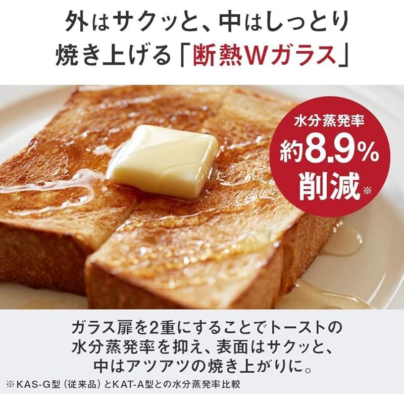 「断熱Wガラス」でトーストの水分蒸発率を抑え、表面はサクッと、中はアツアツでふわっとした食感のトーストに。