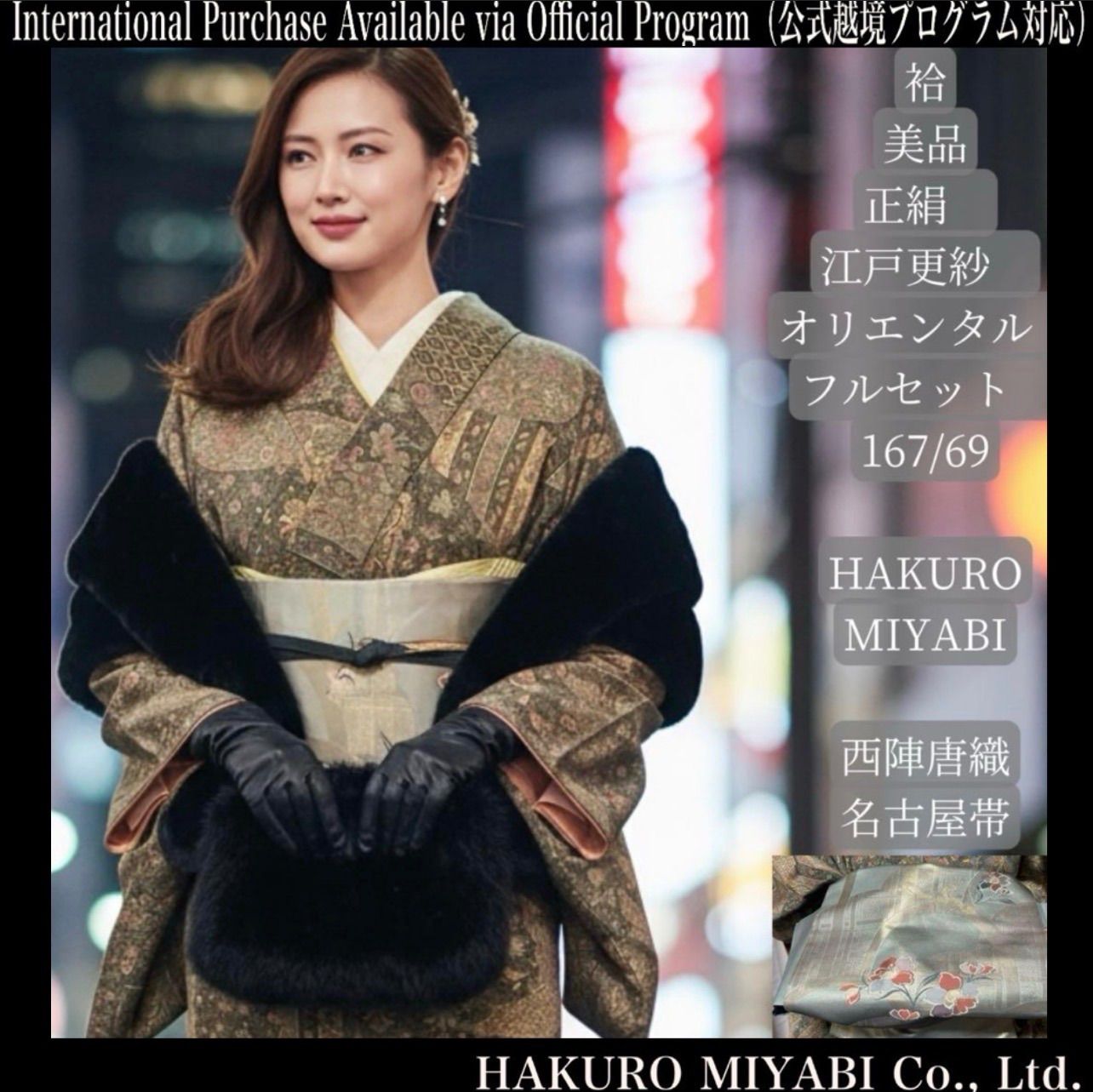 Full set except for juban (under-kimono), dressing accessories, and sandals & bag.