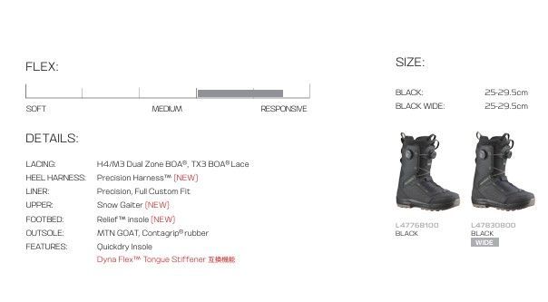 サポート力の高いアッパーにデュアルゾーンBOAを搭載し、あらゆるコンディションで最高級の快適性と万能性を提供します。