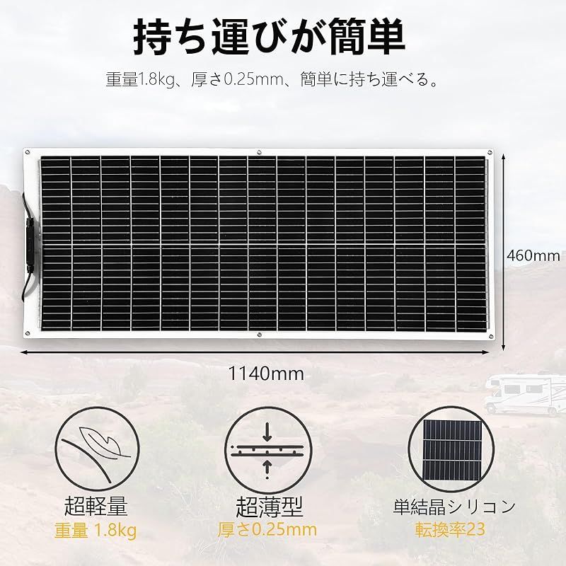 フレキシブルソーラーパネル 100 W 太陽光パネル 単結晶 超薄型 超軽量 250°曲げる RV 車中泊 屋根 ベランダ 船 ボート キャンピングカー 地震停電 防災予備品 非常用 ソーラーパネル 白