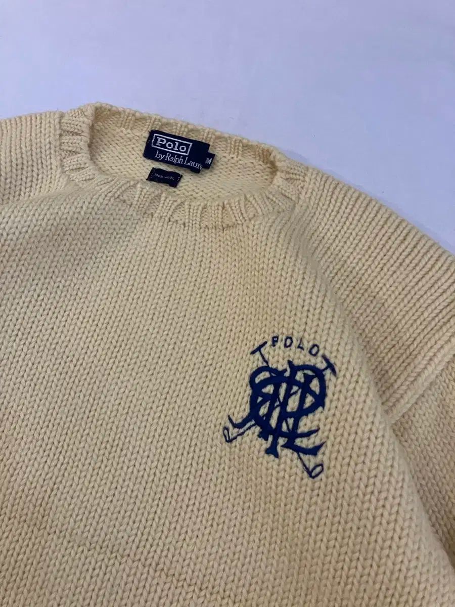 これは90年代のポロラルフローレンのイエローウールニットです。RLPCのロゴは豪華に刺繍されています。やわらかいウール素材で、着心地が良く暖かいです!