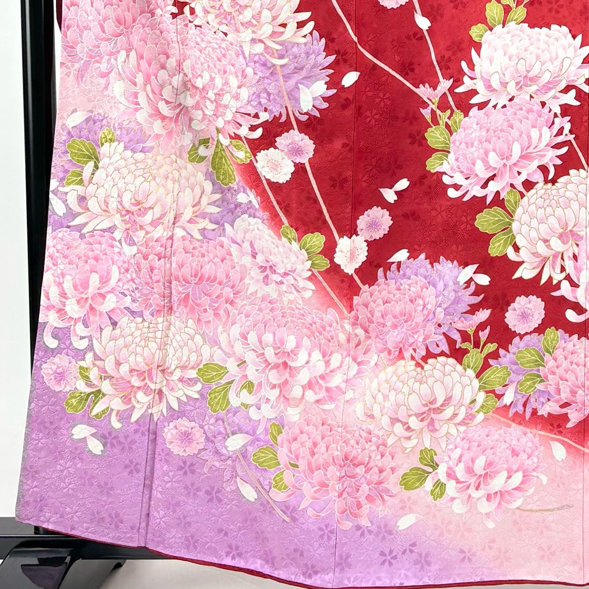 振袖 身丈160 cm 裄丈62.5 S 袷 菊 桜 金銀彩 ぼかし 赤 正絹