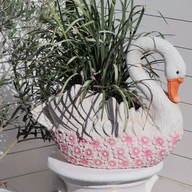 置物 プランター ローマ風 オブジェ 動物 ピンクスワン ガーデニング おしゃれ 白鳥 ヴィンテージ風 屋外装飾 アンティーク風 デコレーション 4-7