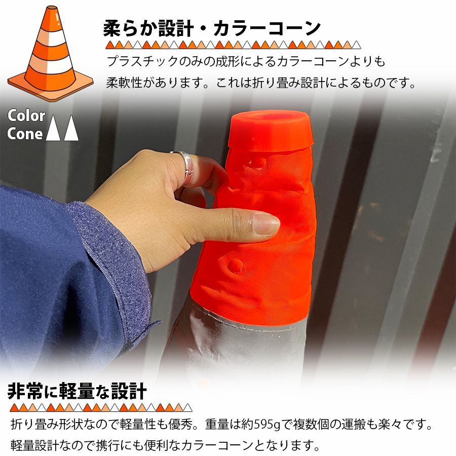 折り畳み コーン 70 cm セット 伸縮 反射テープ付 伸縮コーン コンパクト収納 折りたたみ式 三角コーン 伸縮式 パイロン 駐車場 迷惑駐車防止 安全警告 工事現場 省スペース 現場用品 交通整理 区分80 S NP 060