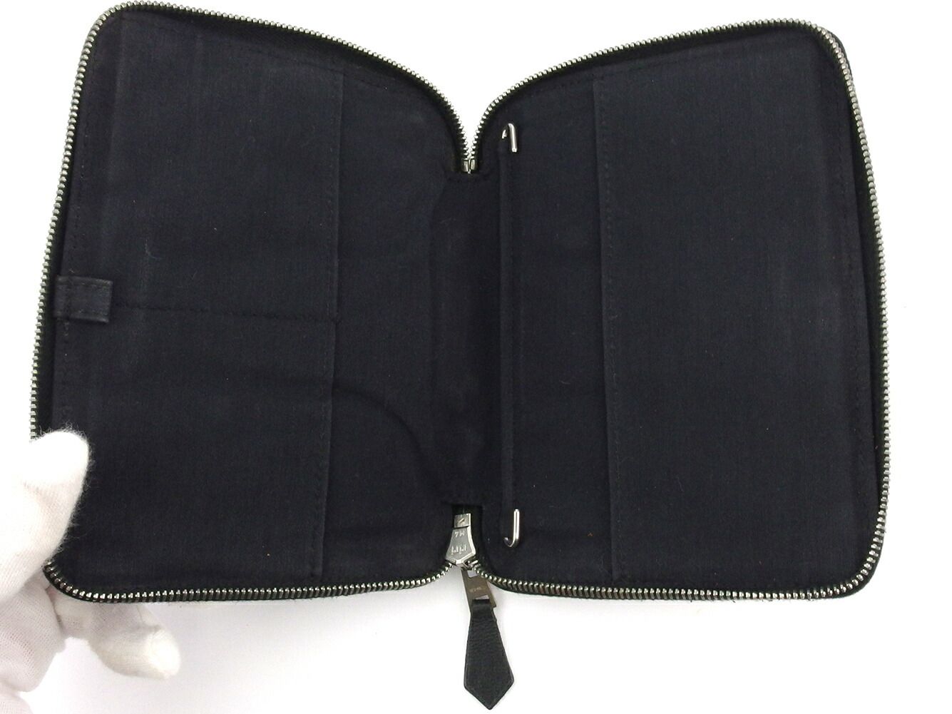 エルメス HERMES 手帳カバー エールライン グレー 灰色 ブラック シルバー レディース