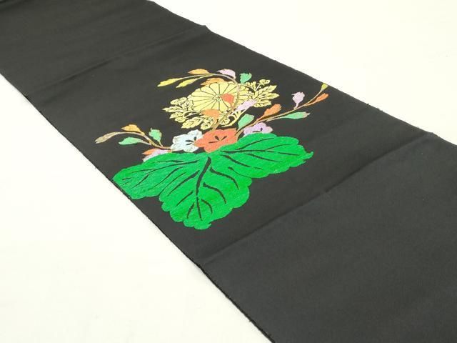 平和屋着物 八寸名古屋帯 吉祥桐菊文 黒地 金糸 正絹 ob