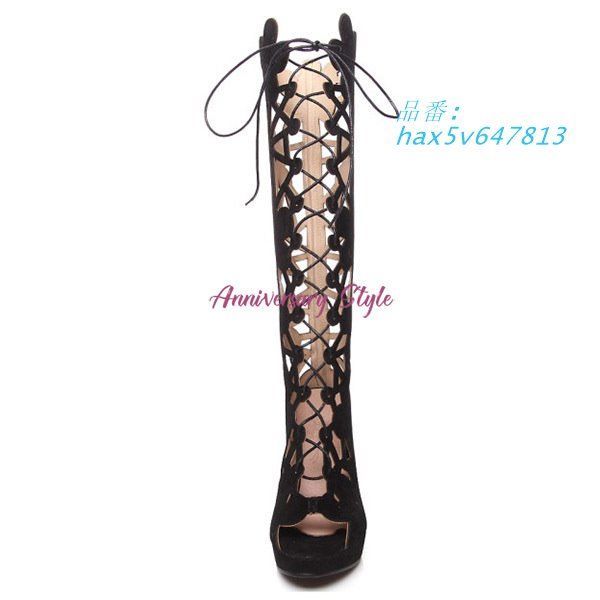 サマーブーツ レディース ロング ヒール 編み上げ 黒 38 パンチング 花柄 ハイヒール 2025 24 CM レースアップ 0631720 夏 hax 5 v 647813