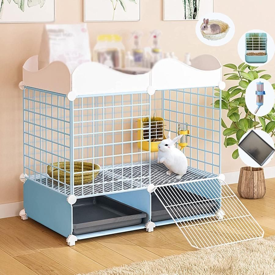 うさぎケージ ペットケージ 飼育 休憩所 組立簡単 掃除簡単 給水器付き お掃除しやすい 通気 持ち運びやすい キャスター付き 移動便利 組み立て簡単 掃除しやす