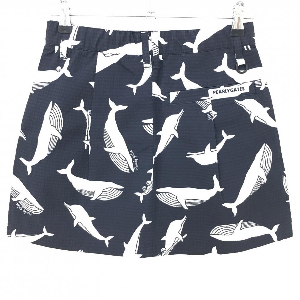 パーリーゲイツ スカート ネイビー×白 総柄 イルカ クジラ サッカー生地 レディース 0 S ゴルフウェア PEARLY GATES
