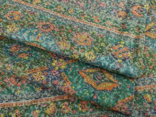 平和屋着物 上質な小紋 紬地 横段更紗花文 金彩 正絹 ck
