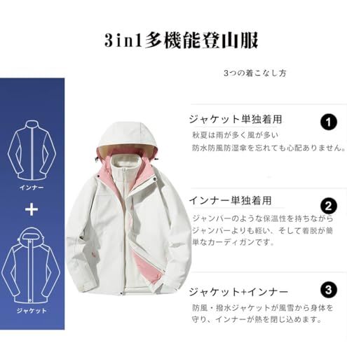 マウンテン ジャケット レディース ゆったり 二着セット 保温 インナー 軽量 撥水 防風