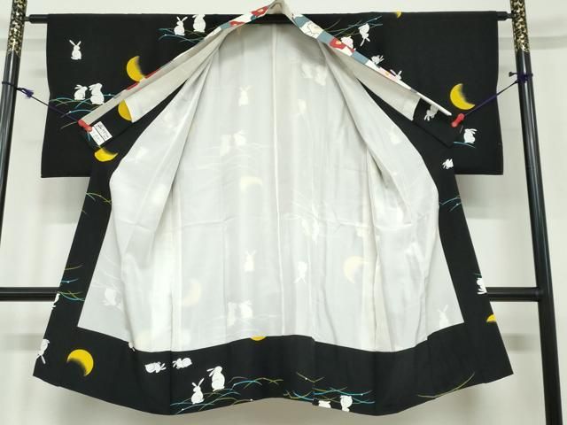 平和屋着物 長襦袢 袷 月兎 つきうさぎ 黒地 やまと誂製 正絹 ud