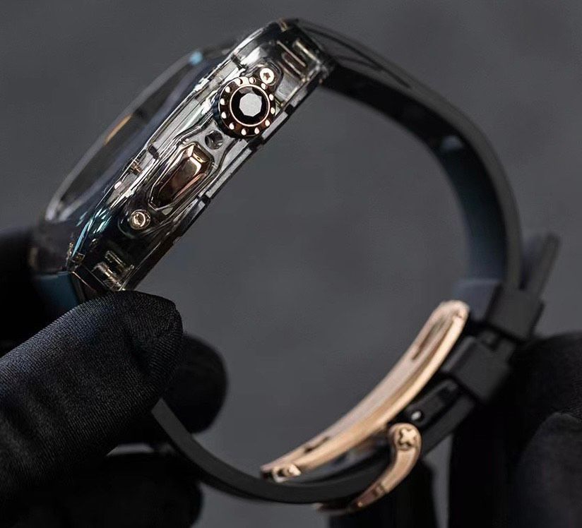 刻印入り高級フッ素ラバーバンド&ポリカーボネート(クリア) ブラックローズクリア&ブラック