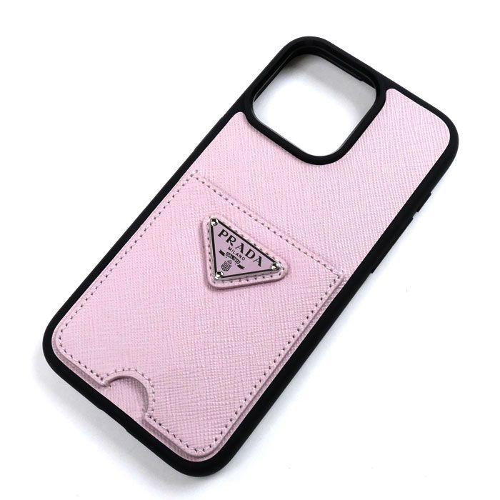 PRADA プラダ サフィアーノ レザー 15 Pro Max iPhoneケース ピンク ブラック 1 ZH 181 レディース