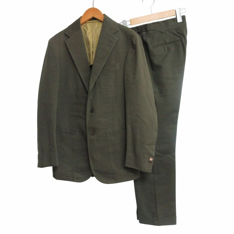 スティレラティーノ Stilelatino 最 モデル シングルスーツ セットアップ 段返り3 B 本切羽 サイドベンツ コットンシルク カーキ オリーブ サイズ44 IBO 68