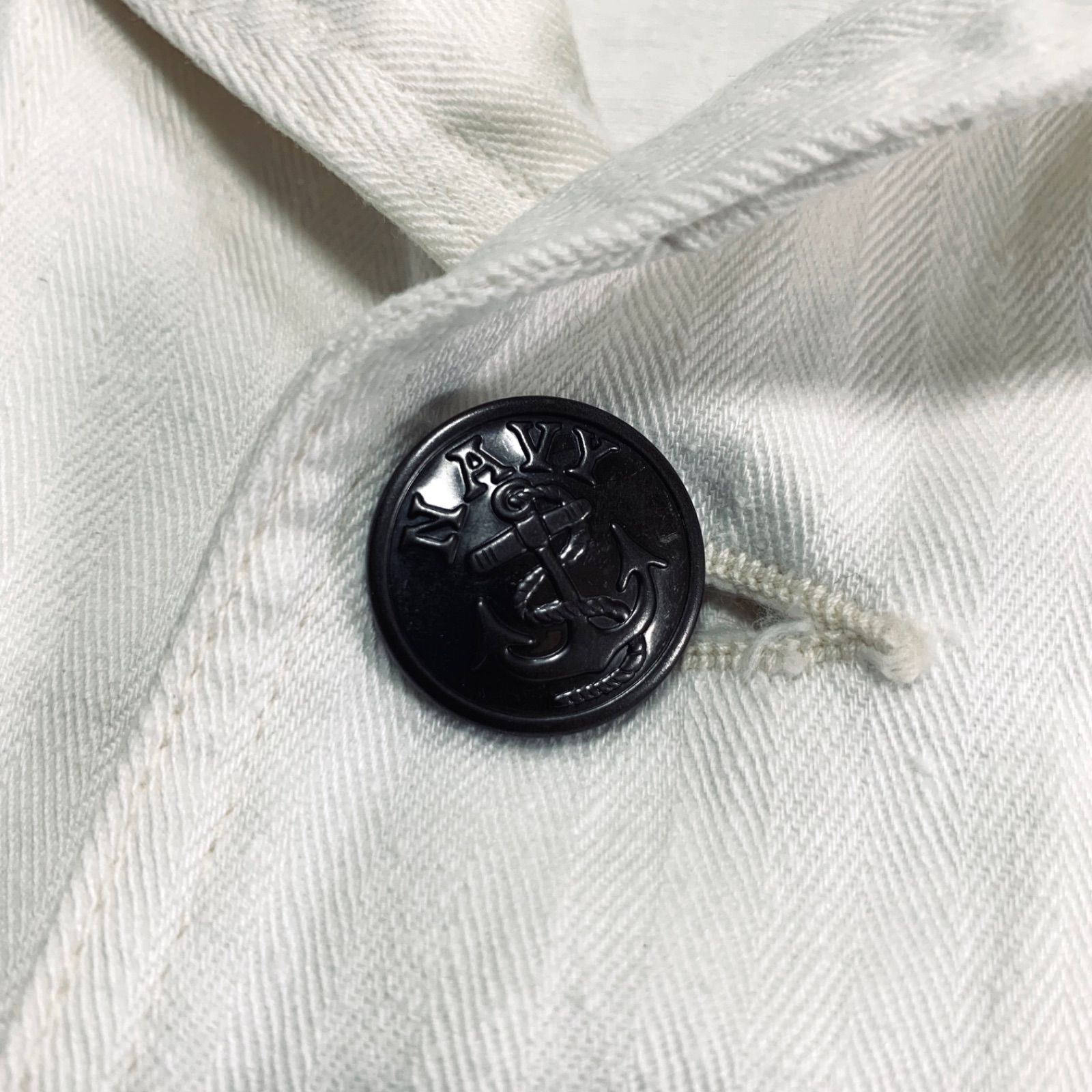 SHAWL COLLAR USNA メモリアルジャケット カバーオール ワークジャケット ミリタリー ショール ヘリンボーン ステンシル ピンナップガール サイズ38 ホワイト 白 ウエアハウス