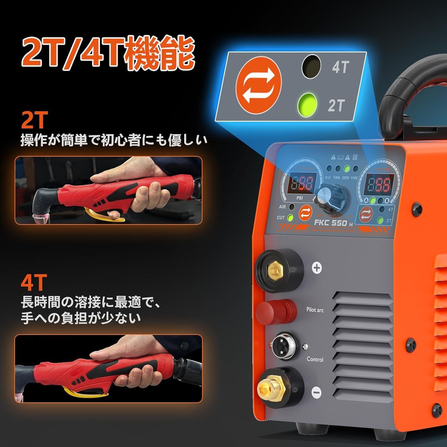 プラズマ切断機 100 V 200 V兼用 最大切断厚18 mm 55 Amp プラズマカッター 非接触高周波エアカレント IGBT インバーター 2 T 4 T制御 ステンレス鋼 アルミニウム 銅の切断用 FKC-550 H