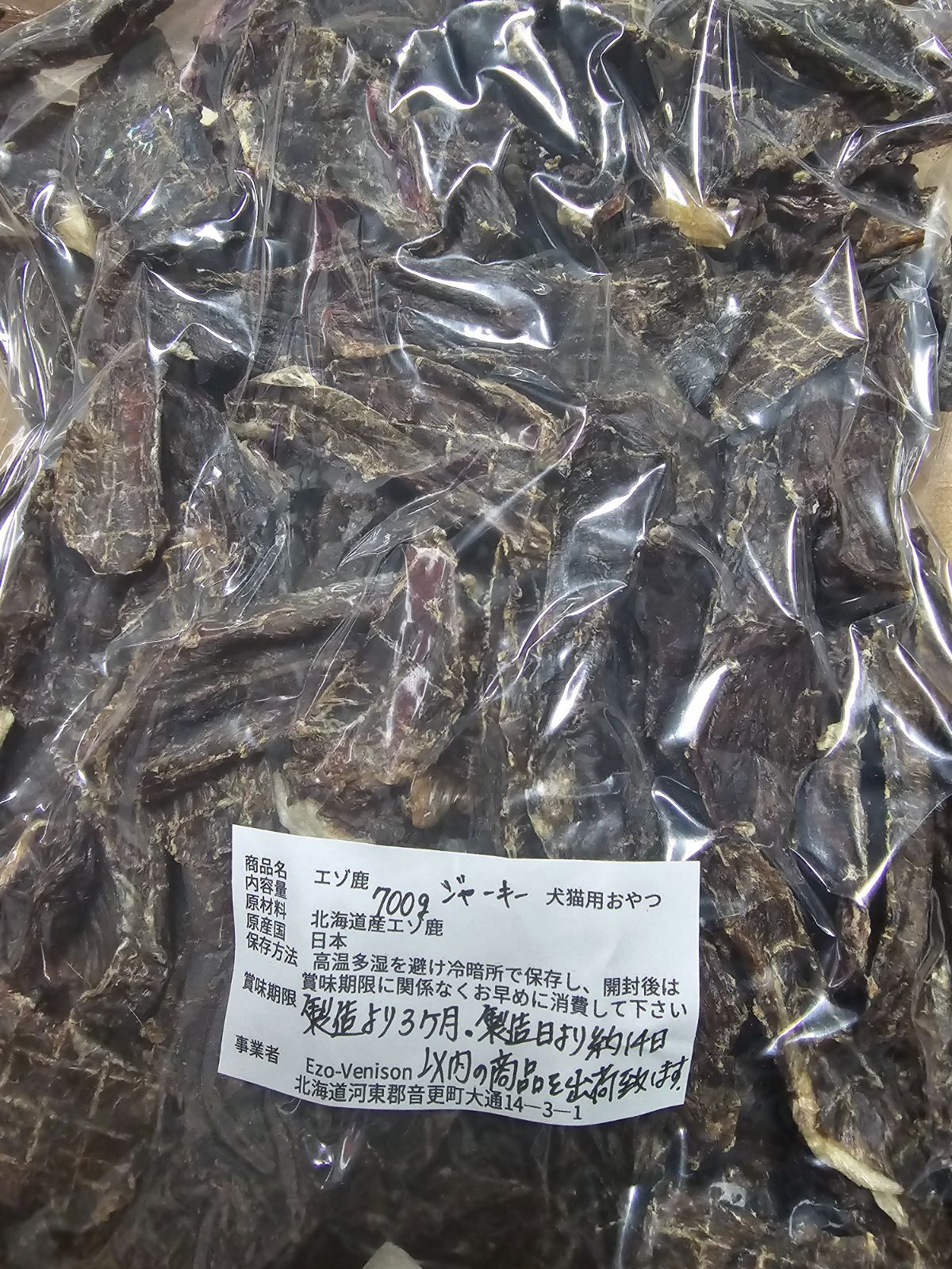 エゾ鹿肉ジャーキー2.8㎏ 700g×4袋 無添加犬猫用おやつ