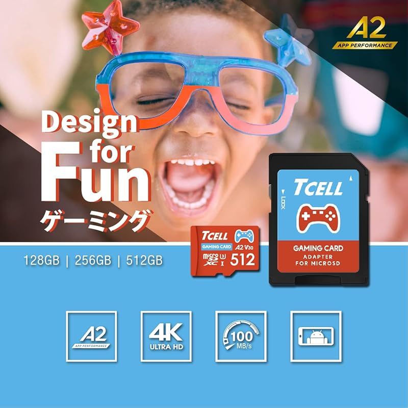 TCELL ゲーミング microSDXC メモリーカード カード1枚持ち運ぶだけで、好きなゲームをプレイできます。 Nintendo Switch、その他の携帯ゲーム機用に設計されています。Nintendo SwitchおよびNintendo Switch Liteに完全に対応しています。大容量のカードがあれば、ゲーム機のストレージを拡張し、eShopからどれでもお好きなゲームをダウンロードすることができます。UHSスピードクラスU3、ビデオスピードクラスV30規格なので、4K動画を録画し、ワクワクする瞬間を保存することができます。高性能で最大100/80MB/秒の高速読み書きにより遅延をなくし、スムーズなゲームプレイを実現。 *容量:128GB/256GB/512GB。 *読み込み/書き込み速度:最大100/80MB/秒 *Nintendo Switchに完全対応 *優れた性能で4K動画録画を実現 省エネ設計 TCELL ゲーミング用microSDカードは、消費電力を30%カットします。ゲームプレイ中の最も大事な瞬間に途切れる心配はもうありません。 非常に高性能なデザイン 読み込み速度は最大100MB/秒、書き込み速度は最大80MB/秒 USH-1 U3 A2 V30インターフェイス搭載。ゲームが始まるまでの無駄な待ち時間はもう必要ありません。 やるべきことはただひとつ:ゲームの冒険を思いっきり楽しむことだけです デバイスを拡張します カード1枚にすべてのデジタルゲームを入れることができます。3種類の容量:128GB/256GB/512GB また、タブレット、Androidスマートフォン、カメラ、ドローン、GoProにもぴったりです。