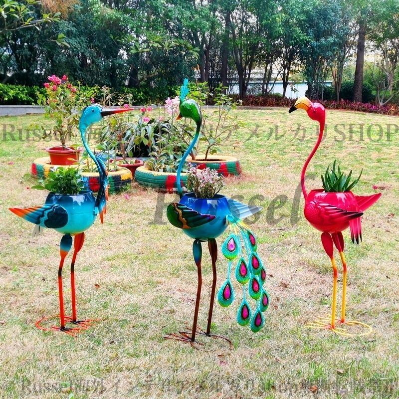 植木鉢 孔雀 フラミンゴ 鶴 鳥 動物 屋外 庭 置物 オブジェ インテリア おしゃれ 大型 フラワーポット 丸型 ガーデニング 金属