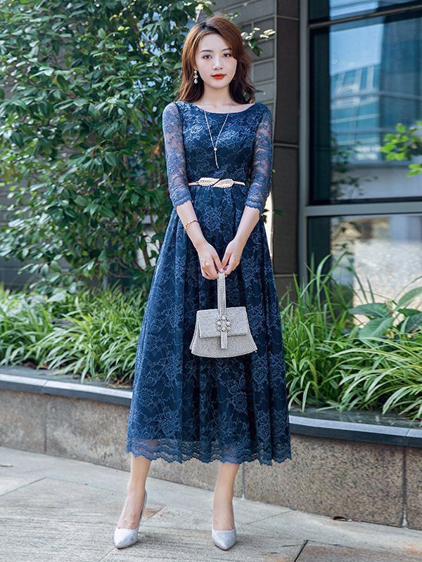 ドレスブライズメイド大人袖付き二次会ロングドレス演奏会花嫁xiuhua 13ミモレ丈発表会体型カバー結婚式ピアノ