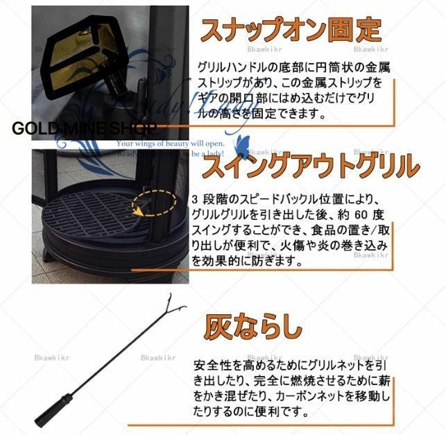 3. スイングアウト鋳鉄グリルのデザインは 3 つの位置に調整可能で、バーベキューや屋外調理に使用できます。