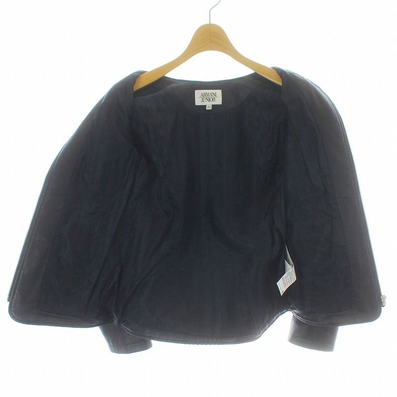 【商品名】アルマーニ ジュニア ARMANI Jr シープレザージャケット ノーカラー ジップアップ 編み込み 女の子 キッズ 12A 154cm 紺 ネイビー /KU