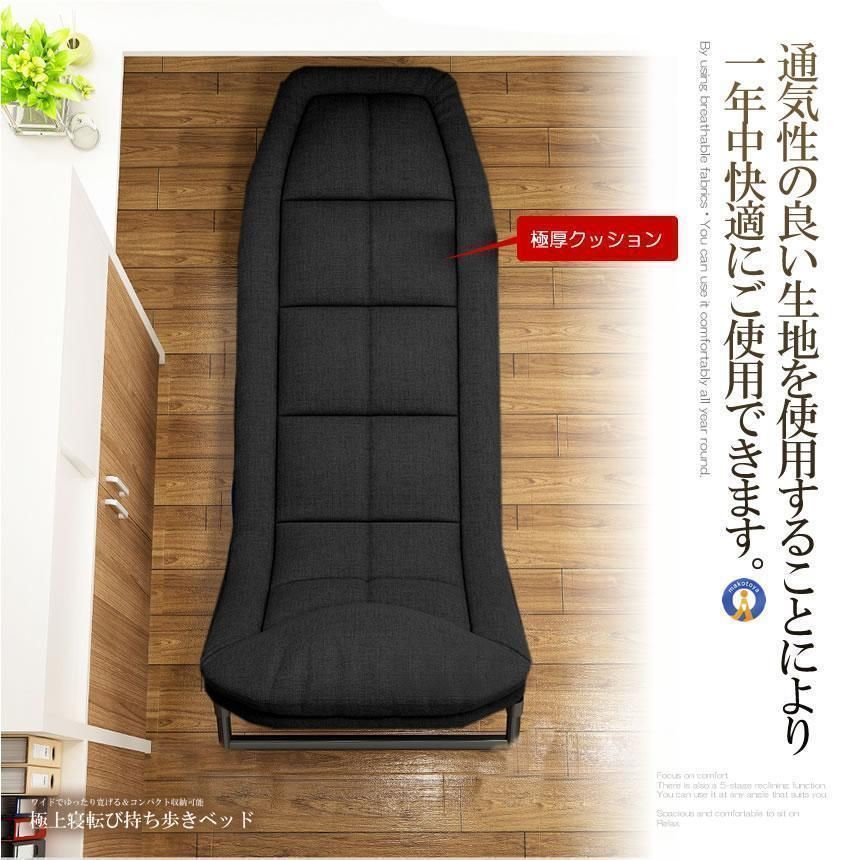 上 寝転び 持ち歩き リクライニング チェア ベッド 5段階 ワイド ゆったり 睡眠 クッション 収納 折り畳み式