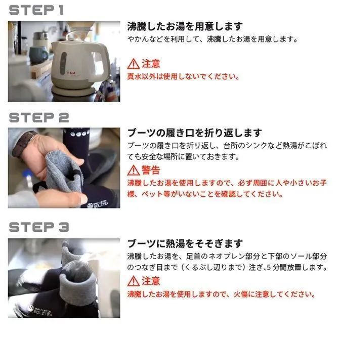 自分の足に合わせてフィッティングできる「熱成型ブーツ」スノーボードの世界では一般的だった「熱成型」をサーフブーツに取り入れた!100% 防水シームにより防水性も抜群。