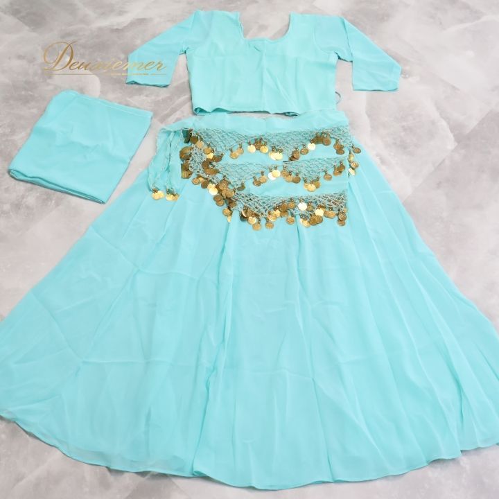 ベリーダンス ボリウッド 衣装 上下セット バヒー グリーン系 緑 ブルー系 水色 L ラメ コイン BAHEE インド製 レース 練習 舞台 発表会 イベント コスチューム ベリーダンス衣装 インドスタイル ダンスコスチューム セットアップ 舞台衣装