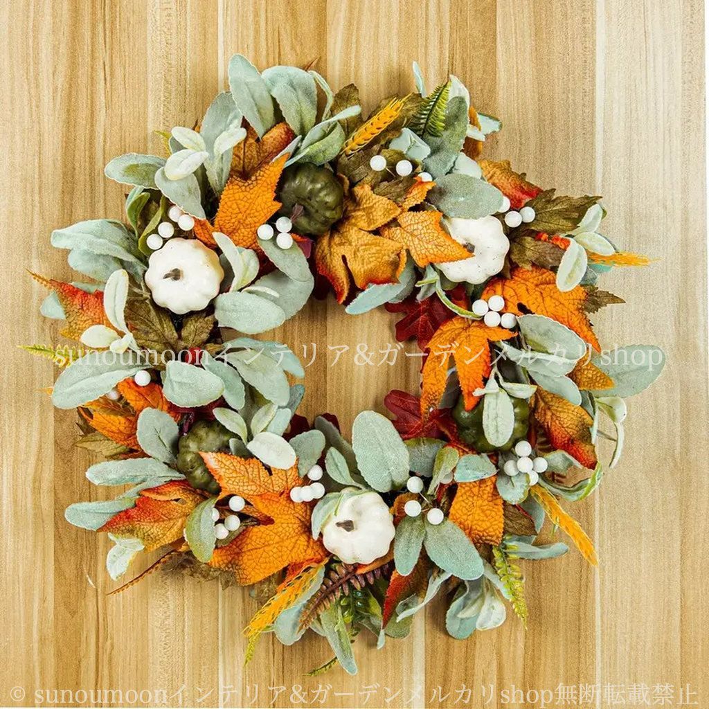リース ガーデニング 庭 ガーデンオーナメント ガーデンオブジェ インテリア 雑貨 ガーデンインテリア オレンジ お洒落 グリーン ガーデン ドア飾り ドア カボチャ 庭の装飾 ガーデン雑貨 おしゃれ 秋 4-7